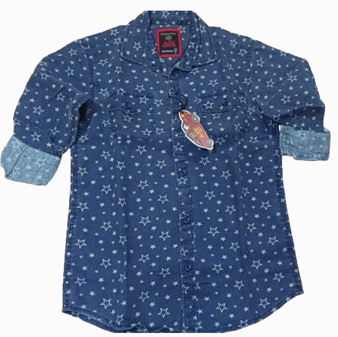 Boys Star Printed Shirt ,Denim wash
